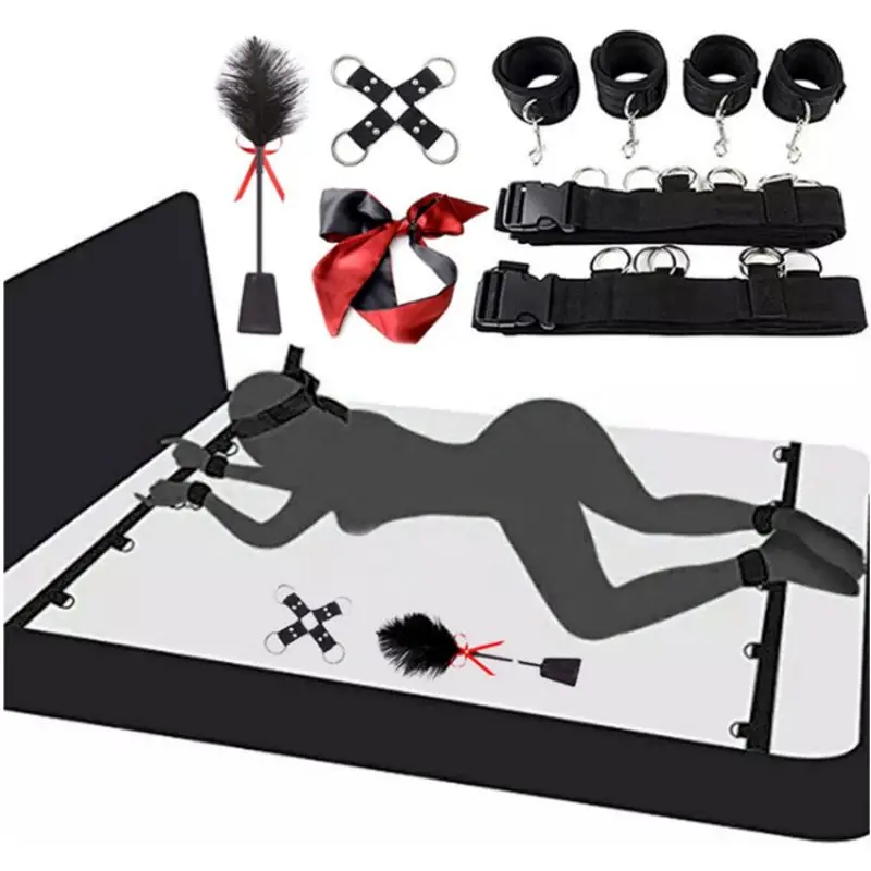 1 Set 4 Piece Sex Bed Bondage Restraint Kit Adult Sex Toys for Couple SM Sex Game with 2X2 Wrists Ankle Cuffs Bondage Set